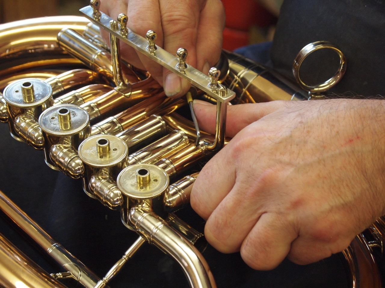 Neben dem Verkauf bieten wir auch einen Reparatur- und Wartungsservice an. In unserer Meisterwerkstatt führen wir unter anderem Ventilüberholungen, Beulenentfernung, austausch defekter Teile (z.B. Mundrohre), Generalüberholubngen sowie allgemeine Wartungsarbeiten durch. Dadurch können Instrumente langfristig erhalten und spielbereit gehalten werden.