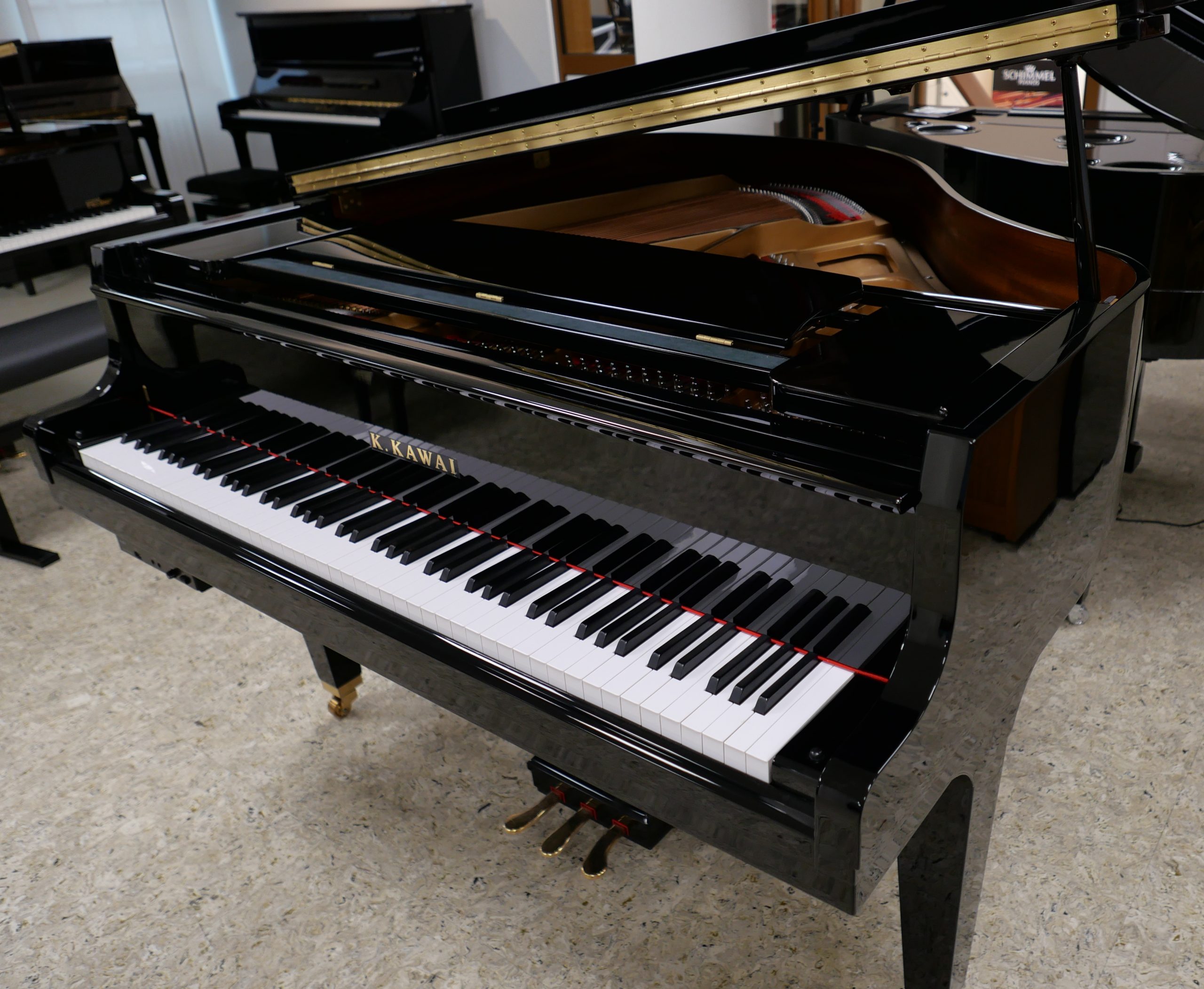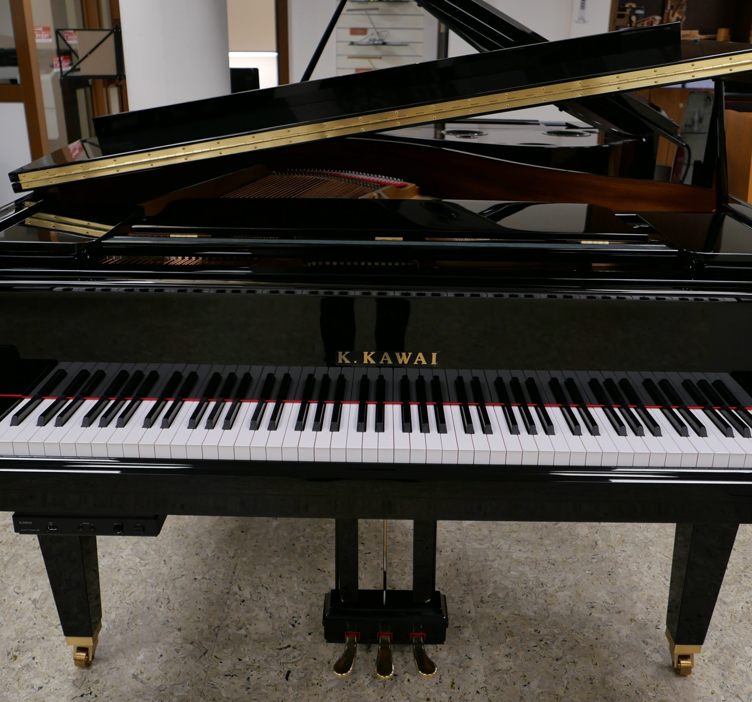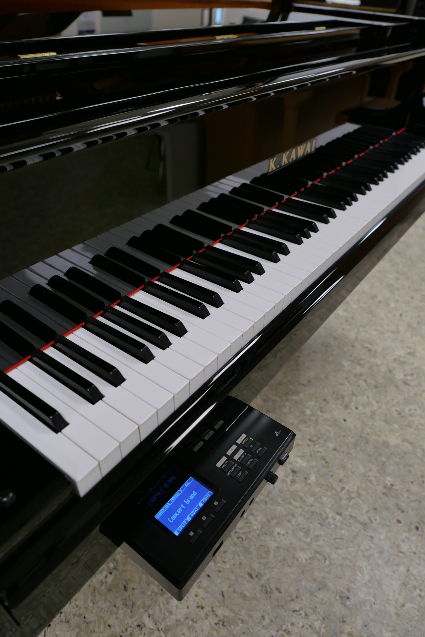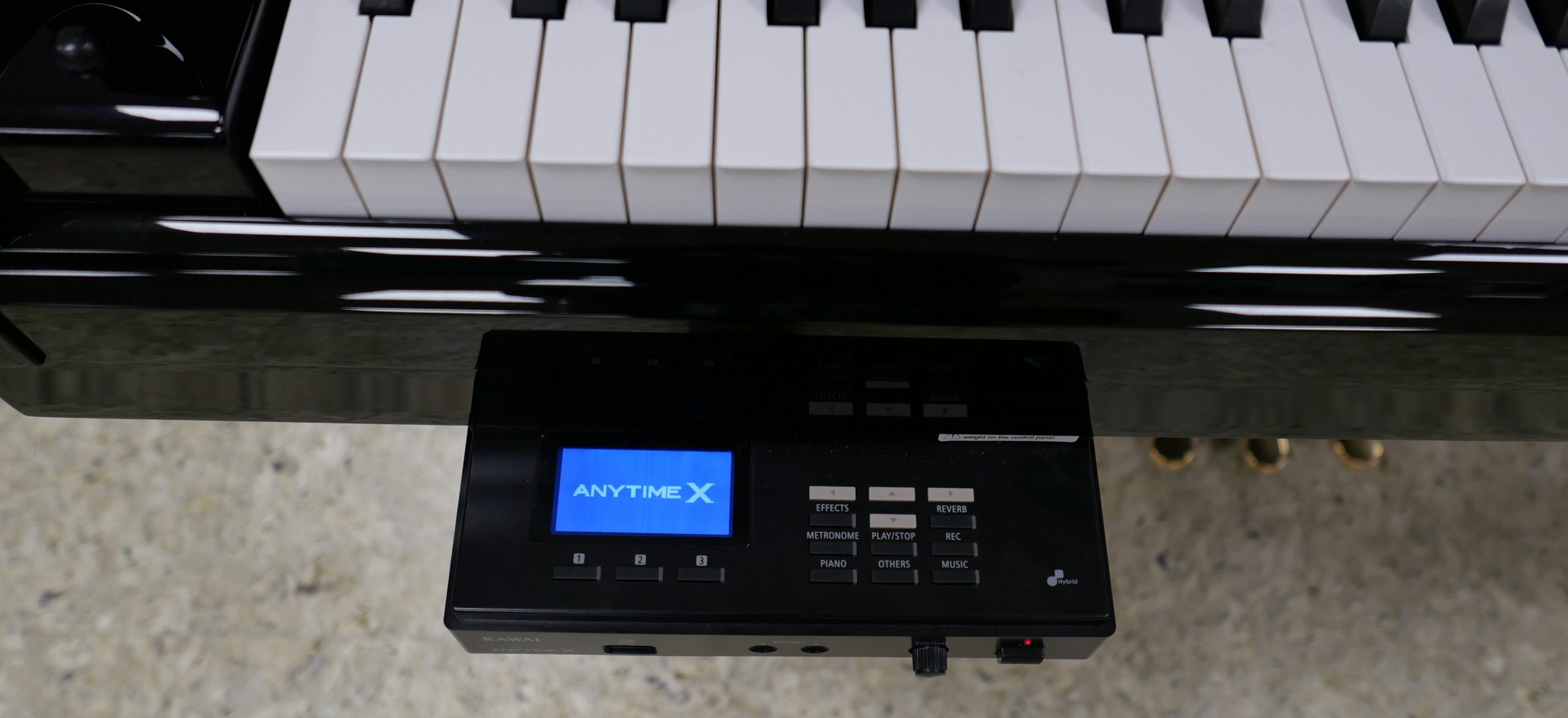 Saiten 1-46 mit Agraffen, Mahagoni Hammerköpfe mit Unterfilz, KAWAI MIII Mechanik, verstellbares Notenpult, zwei Deckelstützen, Digitalklang ATX2 mit mehreren Flügeln, Klavieren, andere Tasteninstrumenten. USB to Device, MIDI, Audio, zwei Kopfhörer Anschlüsse, Bedienungsdisplay in Schubladenformat unterm Spieltisch,