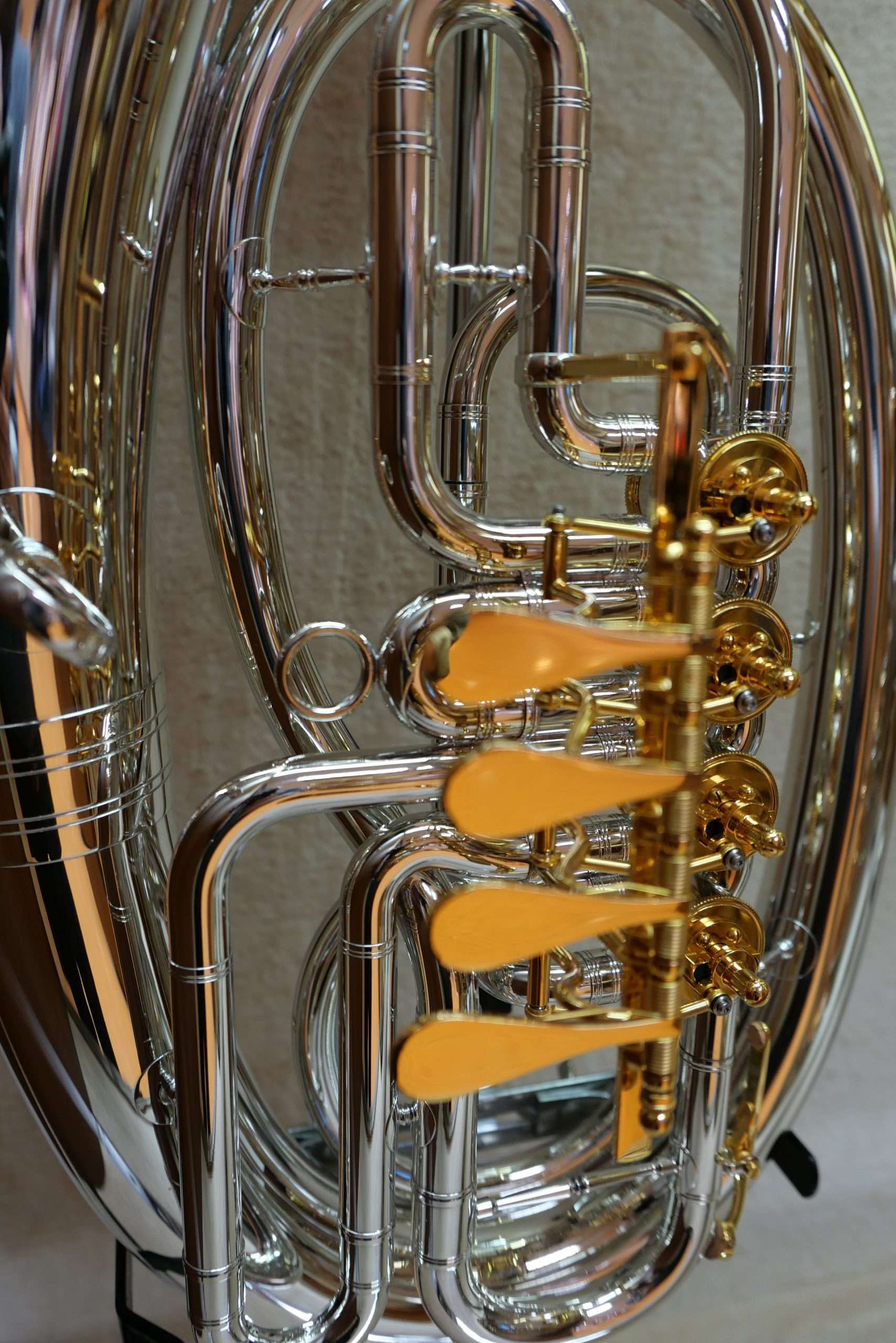 Sondermodell Edition versilbert mit Teilvergoldungen, höhergelegtes Mundrohr, Schallstückdurchmesser 29cm,