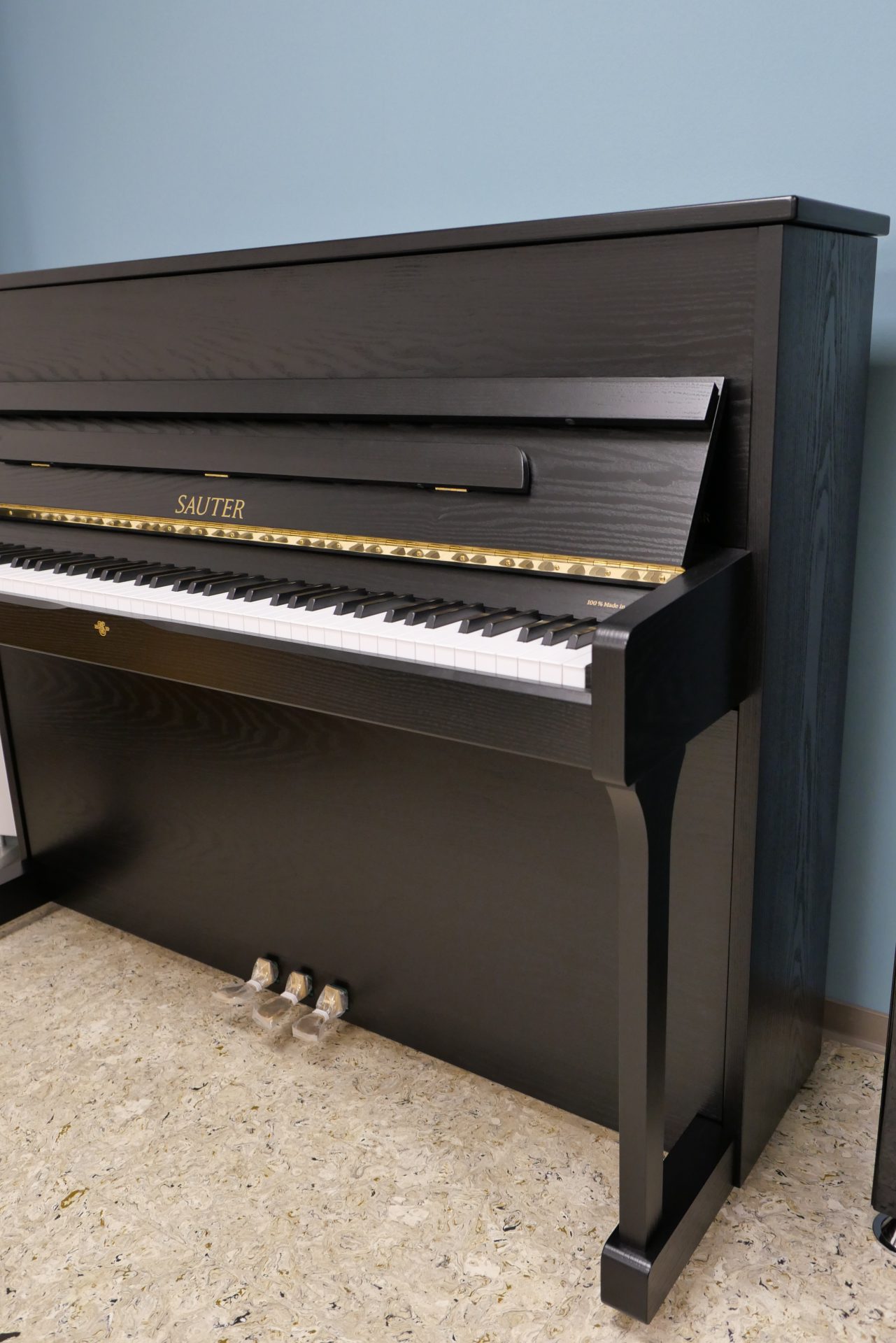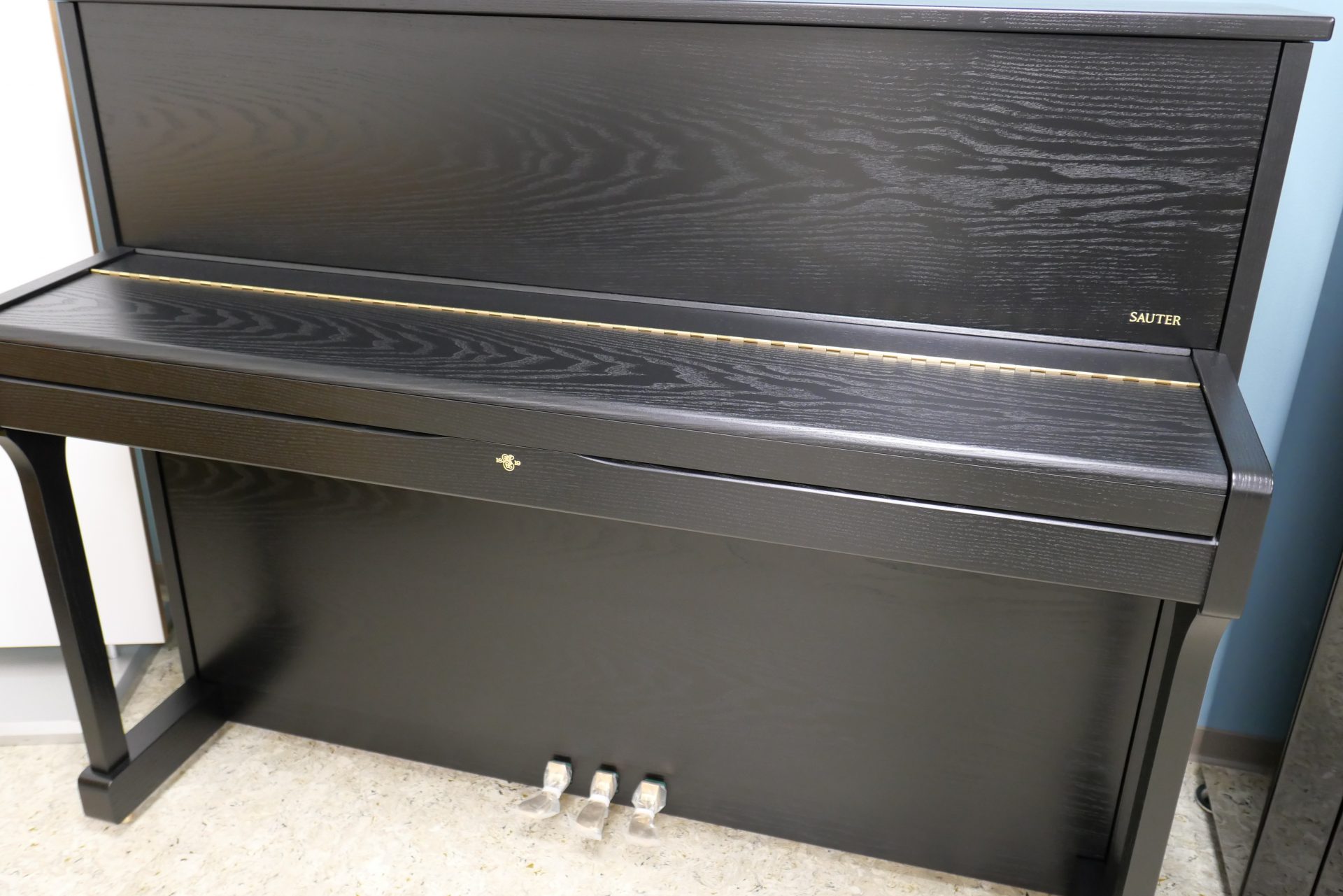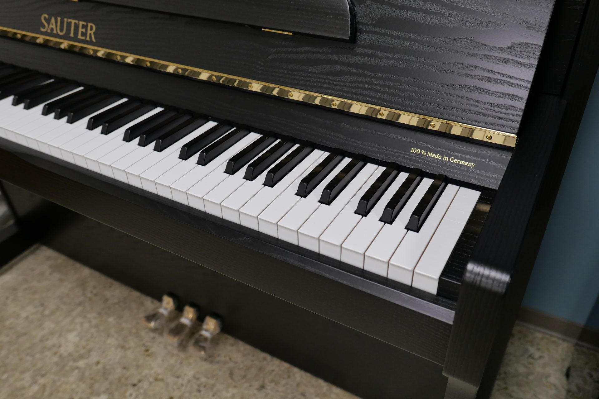 Die Klaviere von SAUTER überzeugen durch brillanten Klang, feines Spielgefühl und hohe Ausdruckskraft mit außergewöhnliche Klangfülle in der Bauhöhe, RENNER Sauter Mechanik, sphärisch gewölbtem Resonanzboden aus ausgesuchter Bergfichte, excellente Bestandteile, drei Pedale, Messingrollen, gefertigt komplett in Deutschland