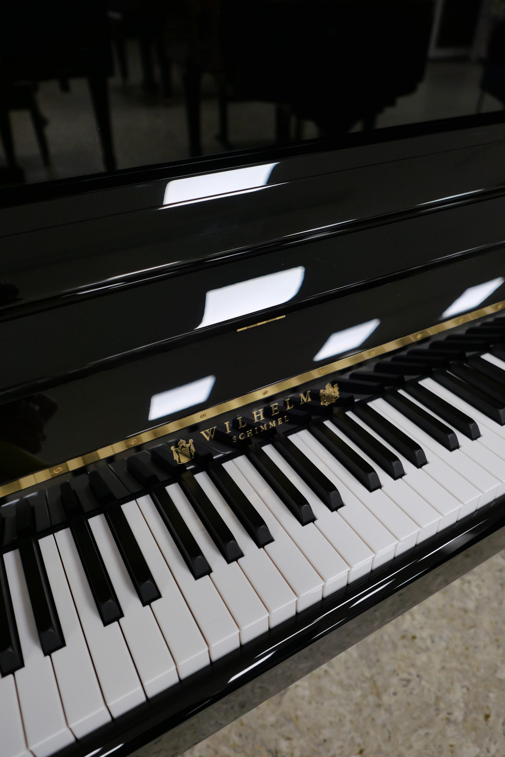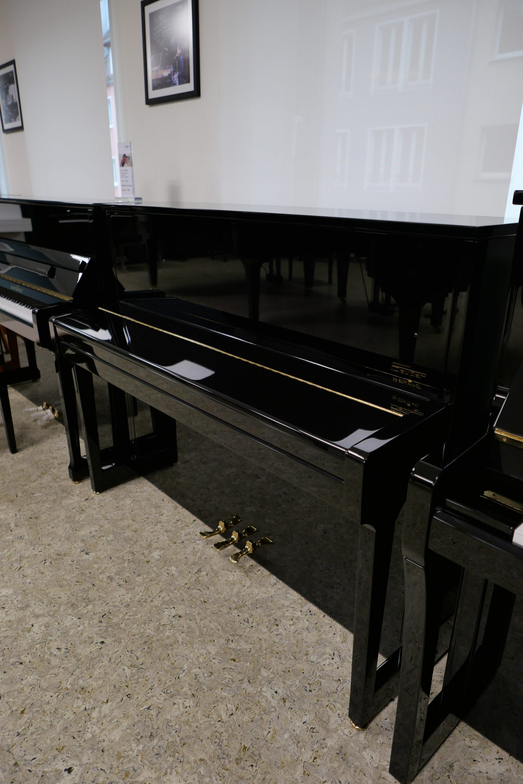 gute Bespielbarkeit und voller Klang zeichnen dieses Modell aus. Statt auf Rollen (Optional) steht dieses Modell auf KS-Gleitern, die höhenverstellbar sind. Drei Pedale, Messingbeschläge.bewährte Schimmel Konstruktion, stabile Rasten, original Schimmel Spielwerk, H:114 x B:148 x T:55cm, 206kg