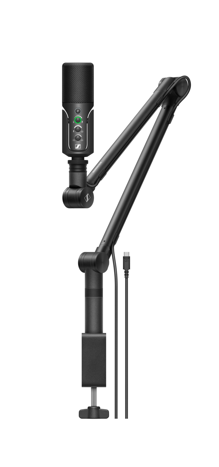 Stummschaltknopf, 1x 3-Punkt-Boom-Arm, inkl.3m USB-C Kabel Aufbewahrungsbeutel